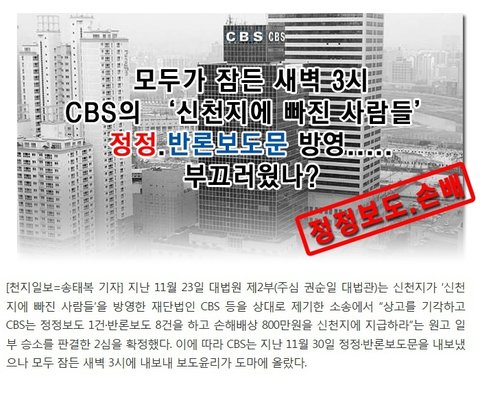 정작 대법원 판결에 대한 결과, CBS 정정반론보도는모두가 잠들은 고요한 새벽 3시에 정정반론보도를 내보내다니요!
