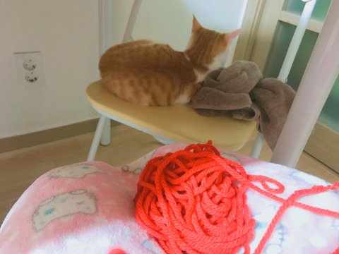 엄마 뜨게질할때 골골송 부르면서 기다려주는 치치
