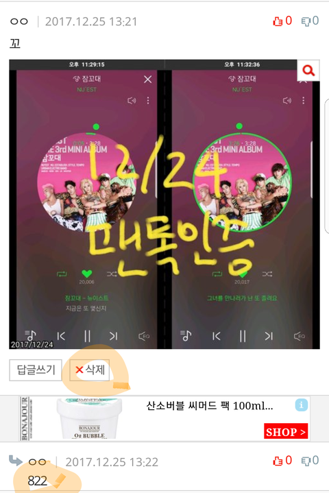 아래의 예시처럼 삭제 가능한지와 번호가 같이 캡쳐되어있어야한다꼬☺
