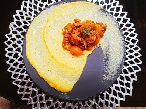 이건 폴렌타 하구 토마토 새우 폴렌타는 이탈리아 옥수수죽 같은거야!