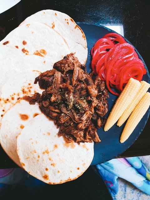 돼지 어깨살 오븐에서 구운거 또띠아 싸먹으면 진짜 맛잇어