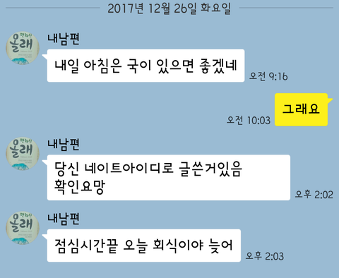 남편 카톡을 이제 봤어요. 댓글 다 읽어봤구요. 간단하게 제 입장만 써볼게요. 애기 낳고 복직을 못했어요. 애기가 몸이 약해서 자주 아프거든요. 지금도 딸애가 독감으로 폐렴까지 생겨 입원중이고, 거기다 제 남편은 불치병 환자랍니다. 밥 못먹으면 죽고 직접 차려먹으면 죽는 병에 걸렸거든요. 그래서 아침저녁으로 남편 출퇴근시간에 맞춰서 밥차려주러가고 청소하고 빨래하고 다시 딸애한테 와요. 내일이면 딸이 퇴원하는데 애기 퇴원하는대로 어머님을 챙기라네요. 네, 저한테 모질게 구신적 한번 없는 정말 좋은 어머님이시지만 저는 싫어요. 유치하지만 남편이 미워서 어머님에게도 좋은감정이 단 하나도 없어요. 딸애가 아프지 않을때도 육아는 오로지 제 몫이였고 집안일은 전업주부의 일이라며 변기에 튀긴 오줌방울 하나 닦지않는 남편, 돈버는걸로 생색내며 양가에 드렸던 용돈 중에 친정 용돈만 끊어버린 남편, 우리 엄마 아프실때 혹여나 자기가 번돈으로 병원비 낼까봐 전전긍긍했던 남편,,,거기다 미혼인 시누까지 있는데 제가 굳이 보살펴드려야하나요?? 저는 남편이 우리 딸의 아빠이기 때문에 같이 사는거지 무슨 애정이 있어서 같이 사는건 아니라고 말씀드리고 싶네요. 남아있는 정이있다면 아마 미운정이겠죠. 각박하다고 욕하셔도 괜찮아요. 저도 제가 각박하다고 생각하니깐요. 어머님 생각하면 안쓰럽고 죄스럽지만, 효도라는게 제 마음에서 우러나와야하는데 그러질 못하네요. 제가 속이 좁나봐요.