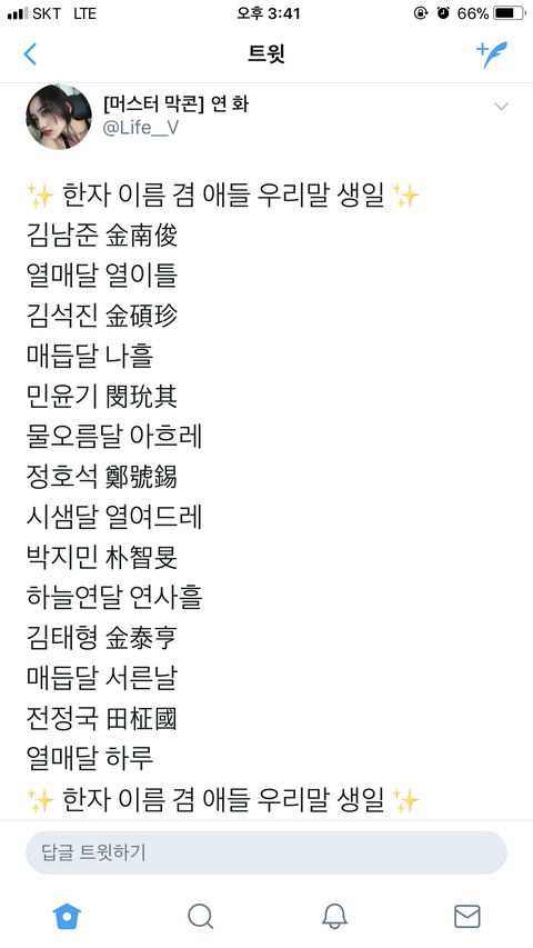 애들 한자이름이랑 우리말생일