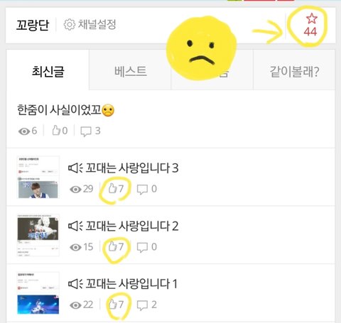 별꼬은 44꼬, 좋아꼬는 7꼬 ㅠㅠ 좋아요 7꼬하려면 별꼬하지 마라꼬☹ 세상에 꽁짜는 없다꼬☹ 꽁지로 올려주던가 별꼬를 줄여주시꼬☹꼬앵☹