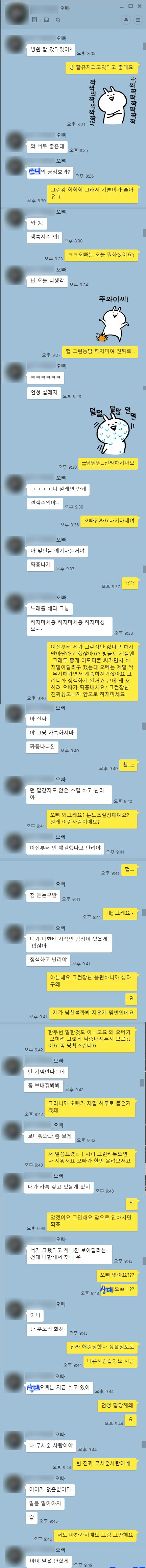 내가 이 글을 쓰는 이유는, 내가 어느부분에서 잘못한 것인지, 또 어느정도 까지 오빠의 잘못인지 이오빠가 이렇게 당당하기 때문에 잘 모르겠음.