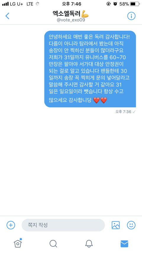 내 탐라에 송장 안 찍혔다는 팬 ㅈㄴ 많아서 보냈는데 다른 분들한테 더 보낼까 말까 추반좀 ㄱ