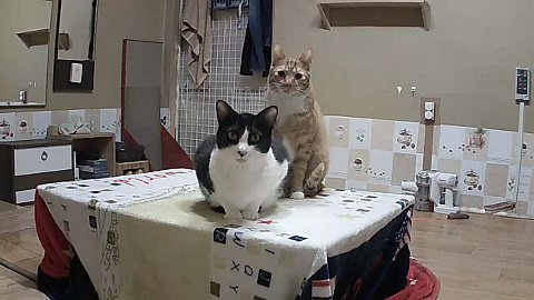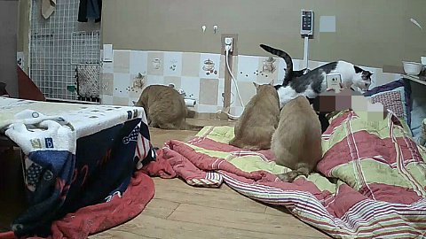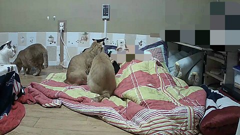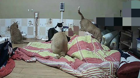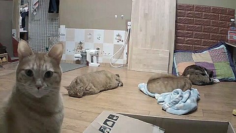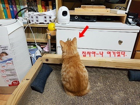 제가 출근하고 없을 때의 풍경인데요. 사진 백 장이면 홈 캠에 눈을 마주친 사진은 한 장 정도이지만 귀여우니 공개합니다.(이미 다 공개했지만;;;)
