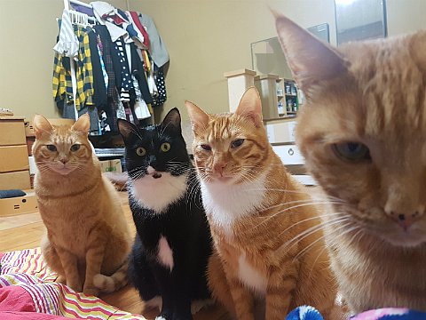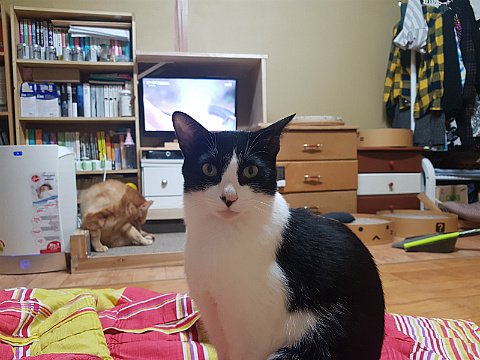 항상 제 주위에 몰려있는 고양이들. 조로가 저를 하염없이 쳐다보고 있어요.