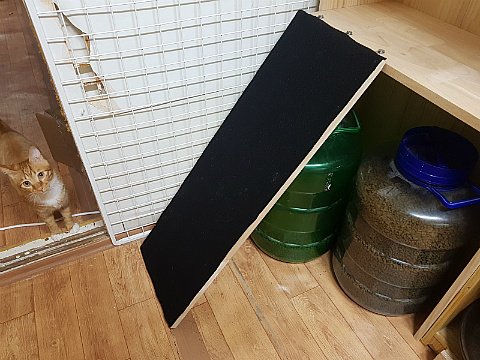 고양이 배변 모래의 한 종류인 벤토나이트는 무게도 무겁고 가격도 비싸요. 벤토나이트와 비교해서 파격적으로 저렴한 펠렛(나무 톱밥을 뭉쳐놓은 것)으로 바꾸려고 벤토와 펠렛을 섞어놓았는데 누가 저기다가 물을 부어놨더라고요. 저 혼자 살 때였거든요. 고양이들의 거부 의사라고 생각하고 (성질나서) 싹 다 버리고 구매한 펠렛 20kg은 다른 분께 드리고 다시는 펠렛에 기웃거리지 않았습니다.