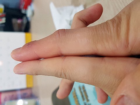 치치 목욕시키다가 물린 거예요. 치치 몸에 곰팡이성 피부염의 증상이 보여서 약용 샴푸로 목욕을 시켰거든요. 공포에 떨던 치치가 방어 차원으로 물었는데 무지 아팠어요. 고양이는 개와는 다르게 날카로운 송곳니가 있기 때문에 힘줄 같은 곳까지 관통 당한다고 해요. 반드시 병원에 가셔야 하고 파상풍 주사도 맞으셔야 합니다!! 필수!!