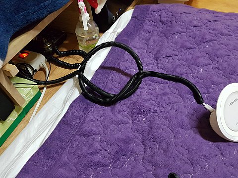 전선 보호관이에요. 이어폰(아이폰 정품) 두 개 해 먹고 블루투스(삼성!!ㅠ) 사자마자 해 먹고 나서는 고속 충전선도 노리길래 씌웠답니다. 거의 모든 전선에 해놓았어요. 고양이의 안전사고 방지를 위해서도 좋은 제품이에요.