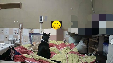 홈캠으로 찍은 모습이에요. 모자이크를 해서 그렇지 제 머리가 저렇게 크진 않아요;;;정말 ㅎㅎㅎ