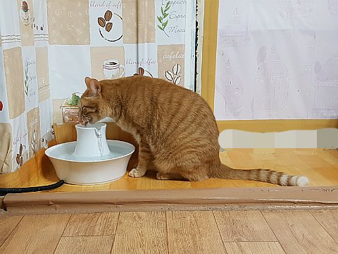 고양이는 스스로 수분 섭취를 많이 하지 않기 때문에 어떻게서든 꼬셔서 물을 먹도록 하는 것이 정수기에요. 정수의 용도보다는 물이 흐르는 것처럼 보이게 하는 식수대의 효과이지요. 옛날 사진이라서 잘 안 나왔지만 키이가 집중해서 보고 있는 하얀 양동이 같은 물체가 정수기에요. 뭐가 그렇게 신기했는지 퇴근하고 오면 엎질러져 있고 외출하고 오면 엎질러져있고 x 10을 반복하고 드디어 제가 보는 앞에서 엎어버리더라고요. 치워버렸어요.