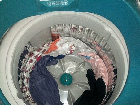 지금 가스레인지는 버튼이 아닌 다이얼식으로 바꿨고요. 세탁기는 항상 코드를 뽑아놓고 다녀요. 안 그러면 고양이들 발에 눌려서 사진처럼 세제도 없이 세탁된 빨랫감을 만날 수 있지요. 냄새 증말!!