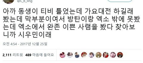 저분 후기가 내 입덕동기랑 비슷하다ㅋㅋㅋㅋㅋㅋ시우민입덕은 빠르면 빠를수록 좋습니다b