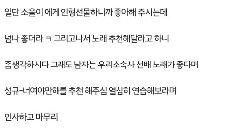 크으 남자는 우리소속사선배노래가좋다니ㅎㅎ 말도예쁘게하시네 ㅎ