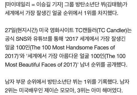 이번1위가 2013년이후 아시아를 넘어 한국인 최초로 방탄 뷔로 선정됐어ㅠㅜㅠㅜㅜㅜㅜ