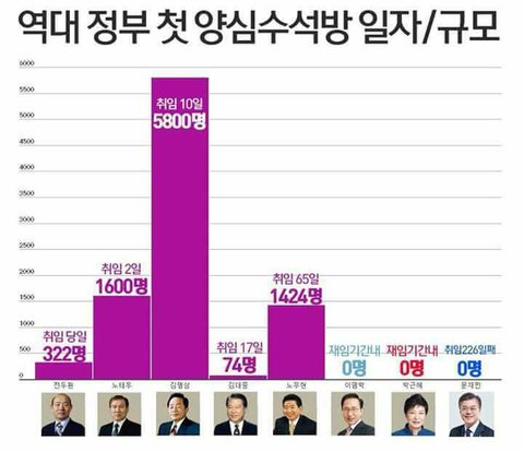 아래 표를 보면 대체로 모든 정권에서 취임후 가장 먼저 한 일이 양심수 석방이라는 것을 알 수 있다.