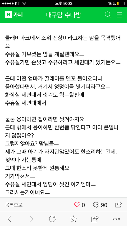 수유실에 뒷물 전용 세면대 있는 백화점에서 씻은거면 진상아니고 애들 이유식이나 젖병 씻는데면 맘충