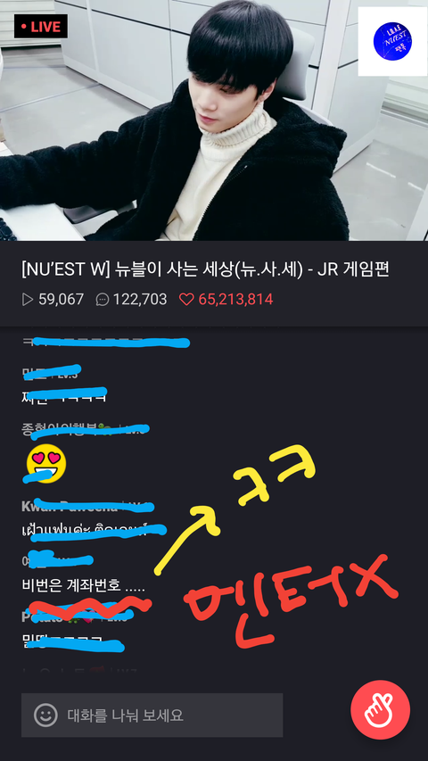 3. 럽들이랑 겜하려고 방제에 비번걸어놓으니 럽들이