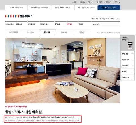 -2017년 11월말에 한샘 본사 홈페이지 대형제휴점/추천 제휴점에서 내림