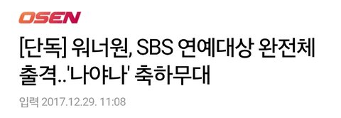 기사) 워너원, SBS 연예대상 완전체 출격..'나야나' 축하무대
