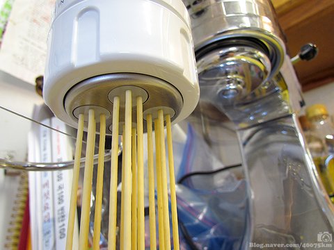 시중에서 흔히 보기 힘든 부카티니(https://blog.naver.com/40075km/220949627572)면이나 가끔 뽑아먹고, 나머지는 주로 스파게티를 뽑아먹게 됩니다.