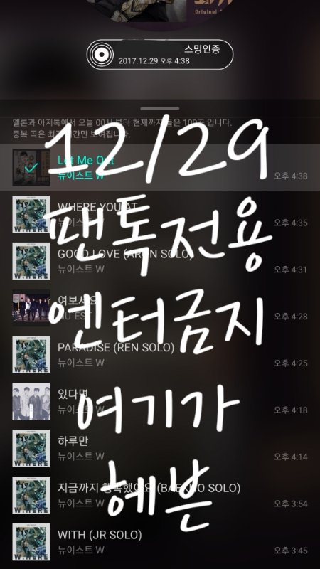 진짜 이 잘 하나 안에 십덕 포인트 너무 많은거 어쩔거야ㅠㅠㅠㅠㅠ 1.하트완벽하게성공함 2.근엄한척 걸어와서 미소발사 뿅 3.곽아론 앉는 곳에 담요 깐거 왜 귀엽고 감사하고 우래기 따뜻한 곳앉아야대오 감사해요 4.왜 너 다리 휙 꼬는거냐 귀여워 죽는다 나 5.밍기 표정 웃을랑말랑 6.웃음최대발사뿅 7.손도 뿅!뿅! 만세 했엉! 8.왜 아롱이앉을때 바닥에 손 짚는것더 귀여움?;;;;;;;; 차암내 9.강동호 뒤로 폴짝 살짜쿵 10.꺄앙동호 너지금 뿌듯하지 으아ㅜ 11.밍기아롱손깍지로 12.하지만밍기쩨알손을어떻게잡은거얔ㅌㅋ마구잡이잡히는대로다잡아버렷!! 13.김쩨알 폴짝 뛰었어ㅠㅠ 14.고개뿅 돌렸어ㅠㅠㅠㅠㅠ 15.미소뿅발사했어 ㅠㅠㅠㅠㅠㅠㅠ 뉴이스트 출구 어디? 응 없어~ 응 아니야~