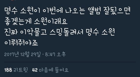 생중계 들었는데 수록곡 진짜 좋다ㅠㅠ 미디엄템포? 암튼 내가 진짜 좋아하는 스탈ㅠㅠ 무겁지않고ㅠ 그리고말야ㅠㅠ 명수가 이랬대... 명심하고 진짜 열심히 해보자 진짜ㅠㅠ 짹펌이야ㅠㅠ