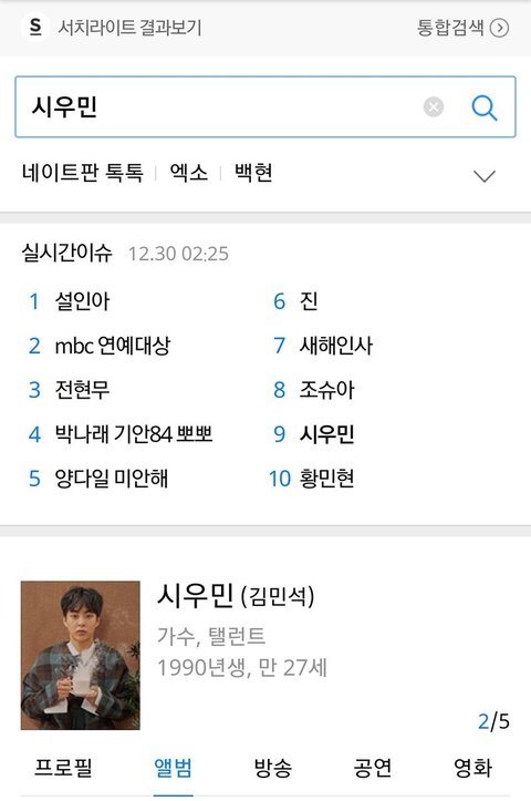 다음이랑 카톡 실검에 시우민 등장 ㅋㅋ