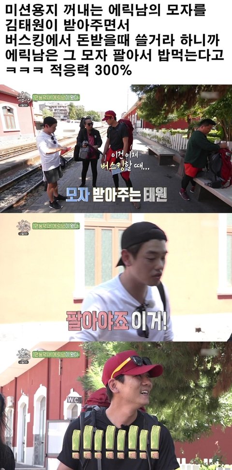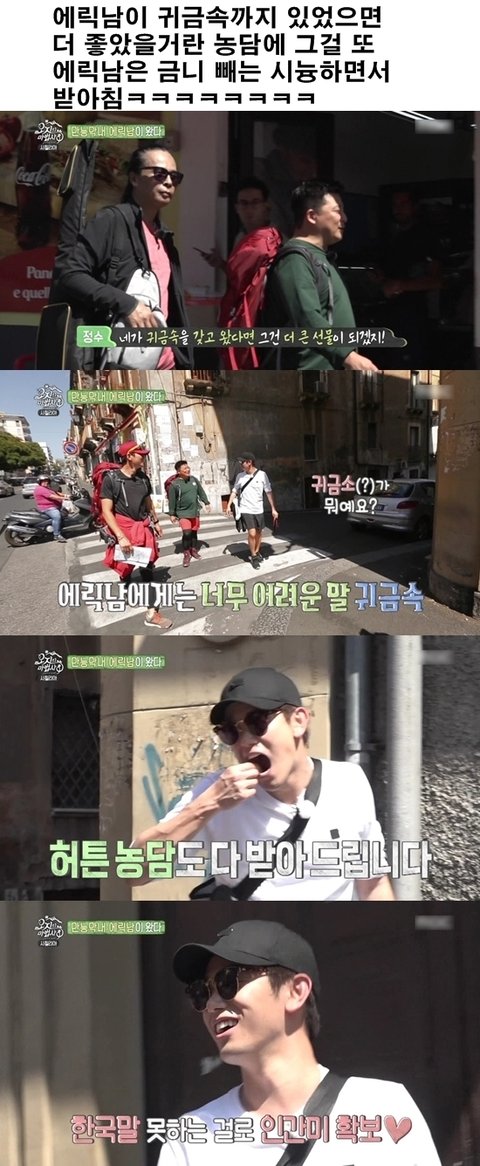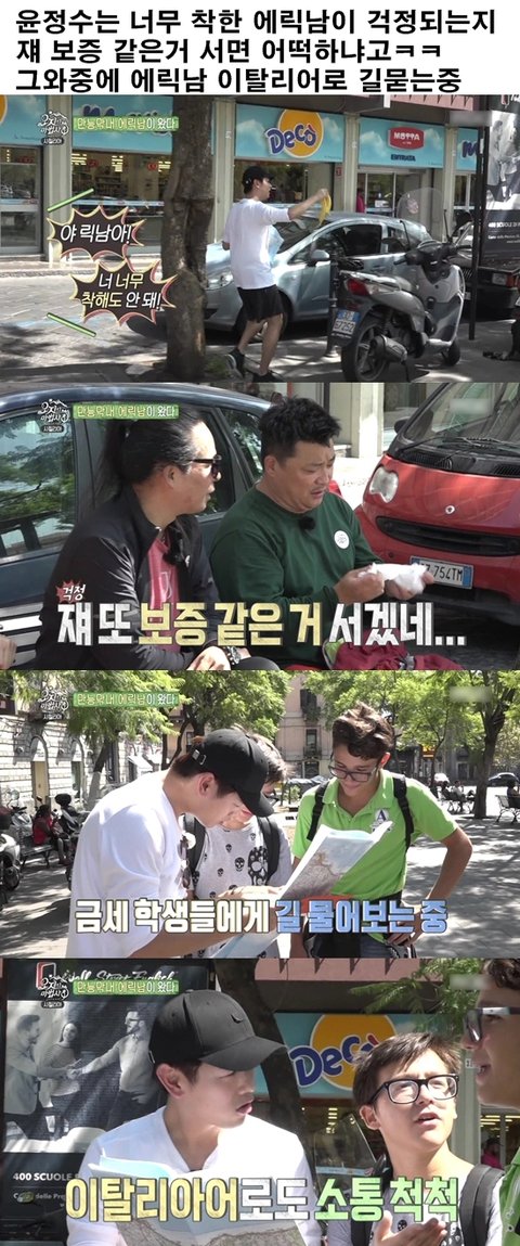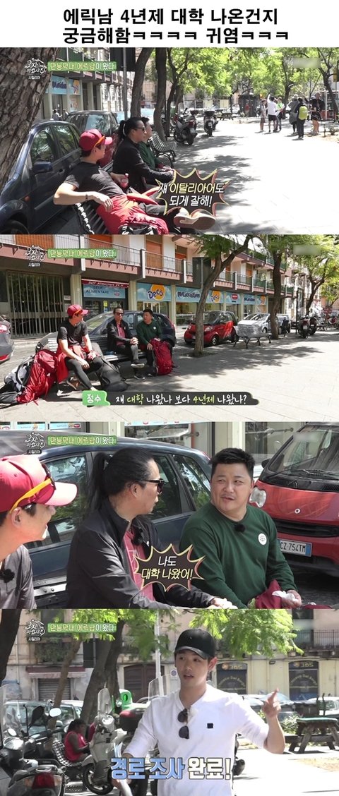 에릭남 한주밖에 안나와서 베스트 팀워크상 받는데 뒤로 빠져있으니깤ㅋㅋ 정수형이 에릭남 수상소감 말해야 된다고 팔짱까지 끼면서ㅋㅋㅋ 진짜 해외 나가서도 바나나껍질 하나도 다 에릭남이 수거해서 알아서 버리고 밥값도 버스킹하고 일해가면서 와인 한병 얻어가고 연예인들 여행프로 호의호식 스탈 안좋아해서 별론데 이건 막 서로 보탬되려고 하고 챙겨주고 하니까 너무 흐뭇하고 재밌고 보기좋아ㅋㅋ