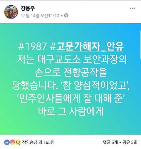 당시 고문 피해자분들도 정권의, 1987년의 피해자이십니다.