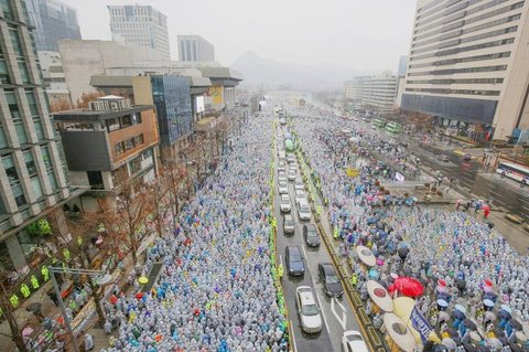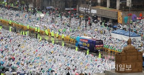 서울 광화문광장에선 무슨 일로 저리 많은 사람이 모여 행사를 치렀을까요?