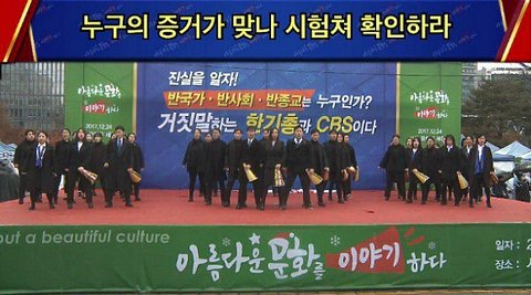 이에~! 광화문광장 행사로 CBS와 한기총의 잘못을 온누리에 낱낱이 드러내반국가•반사회•반종교에 대한 진실을 알리고자 광화문광장 행사로 모였던 것입니다.