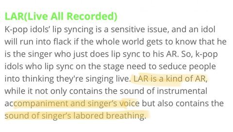 일단 live ar뜻은 live all recorded임 해석하자면 미리 다 녹음됐다는 소리임 물론 숨소리까지 녹음함