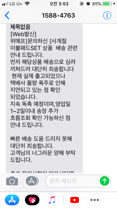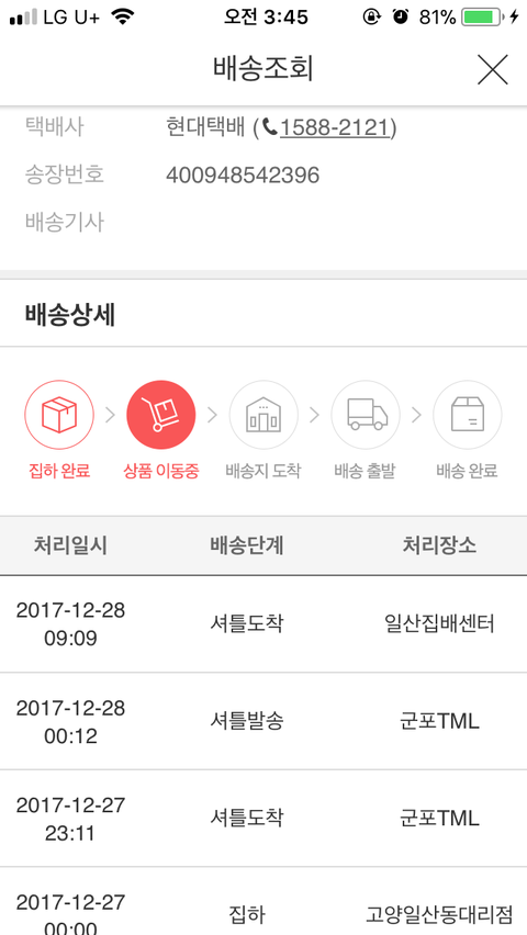 안녕하세요 12.22일에 위메프에서 이불세트를 시킨 사람입니다 물론 아직까지 도착하지않았구요 너무 황당한일이어서 지식인에올려 도움을 받아보려합니다 위와같이 12.22일 금요일에 핸드폰결제로 이불을 시켯습니다 토요일까진 당연히배송이안올줄알았고 일.월 다빨간날에 크리스마스까지겹쳐서 좀 걸릴거라고 생각도햇었지만 배송조회를해보니까 너무 이상하더라고요 홈페이지에선 cj대한통운으로 보내며 2~3일이면 수령할수있을거라고도 쓰여져잇었는데 롯데택배로되어있더라구요 상품이 출고됬다길래 배송조회를 여러번했는데도 계속 상품이동중에 머물러잇었고 사진에 올린거처럼 일산에있는데도 택배가안온다는게 이상하고 뭔가문제가잇는거같아서 오늘 택배쪽에 전화를하였는데 현재위치에잇는곳으로 번호를 알려준다길래 그번호로 했지만 통화음만가고 받지를 않더라구요 너무답답해서 위메프에 직접전화도 해보앗지만 별다른답을 얻을수없었고 자기네들은 알수가없는데 이상하게된거같다고 하시면서 택배대리점? 으로전화해보고 처리해주신다길래 기다렷지만 그 대리점마저 부재중이엿고 저는 계속하염없이 기다릴수밖에 없엇슴니다 물론 그 제가시킨쇼핑몰?쪽 번호도 개인전보상 알려줄수없다해서 정말 답답해서 다시 롯데택배 고객센터로 전화를했지만 대기자가 많다면서 결국 5시부터 1시간정도전화만 돌려놓고 얘기도하지못하고 6시가되어서 상담업무가종료됫다고 하더라구요 이런경우에는 대체 어떡해 보상을받고 누구한테얘기를해야되는지 알려주세요 위메프측에서는 토요일에안오면 일.월 빨간날이라 또3일을 아무것도알수없는상태에서 기다려야합니다이런적은정말 처음이네요 위메프측에서도 빨리해결도울수잇도록 물어보셔준다고해서 답이온것은 저문자였습니다 답답합니다 정말 ;; 어떡해 얘기를해야될지도 모르겠습니다 ㅜㅜㅜㅜ