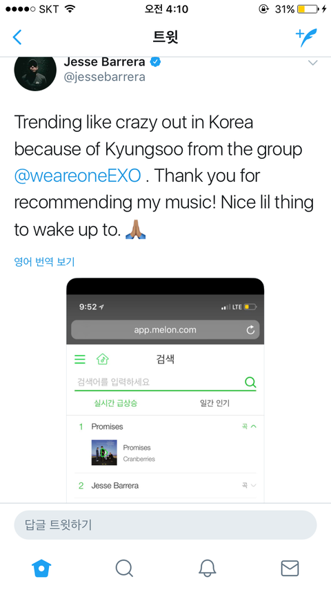 경수가 추천한 노래 주인분이 글 올리신듯