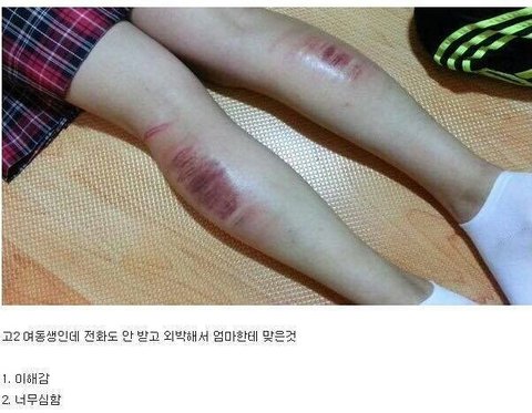근데난 솔직히 이해감 내동생 중딩때 맨날 가출하고 애들 괴롭히고 삥뜯고 사고치고다녀서 아빠가 저정도로 심하게 회초리로 혼낸적 있었거든 그래서 이해감 말로해서는 안될땐 매를 들어야된다고 생각함 그래도 애를 어떻게 때려...그건 학대지ㅜㅜ 이런 마인드로 혼을 안내니까 막나가는 애들이 더 막나가는거야 말로하면된다고??ㅋㅋㅋㅋㅋㅋ우리엄만 내동생한테 무릎까지 꿇고 빌었어 그래도 안들었음