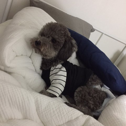 그레이 푸들 / 회색, 진회색 털이 섞여 있음