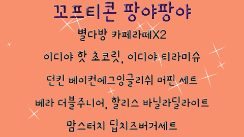 더욱 큰 감동을 주기 위한 꼬프티콘 팡!팡!❤☺❤ 꼬랑스런 꼬야들 덕분에 추가 꼬프티콘 팡야팡야 꼬벤트가 열렸다꼬☺지난 번에 인증해준 목록에서 당첨자를 제외하고 다시 추첨해꼬☺ 아쉬웠던 미녀단은 꼬다닥 꼬야네로 와서 확인하시라꼬☺☝️