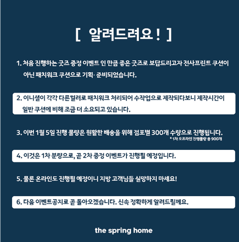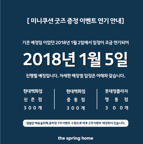 더/스프링홈 미니쿠션 증정 이벤트 연기