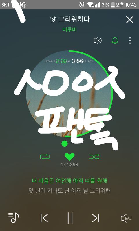 가게나 길거리에서 들려오는 비투비 노래가 너무 좋았어 난 그게 너무 좋았는데 저어어어기 엔1터에서는 자기들끼리 올해에 노래라고 북치고 장구치고 난리나던데 지들끼리 떠들던 말던 상관없잖아 !!! 우리 지금까지 비투비만 좋아하고 잘해왔으니깐 쓸 때 없는 이야기에 상처받지말고 앞으로도 그냥 비투비 노래 들으면서 행복하고 우리 2018년도에도 어덕행덕하자!!!
