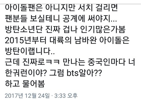 맞아 방탄 중국에서 인기 많은 것 같아 ㅋㅋ