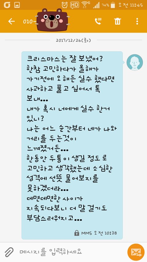 고민고민하다가 연초까지 안좋은 감정 가지고 가기 싫어서 카톡을 보냈습니다.