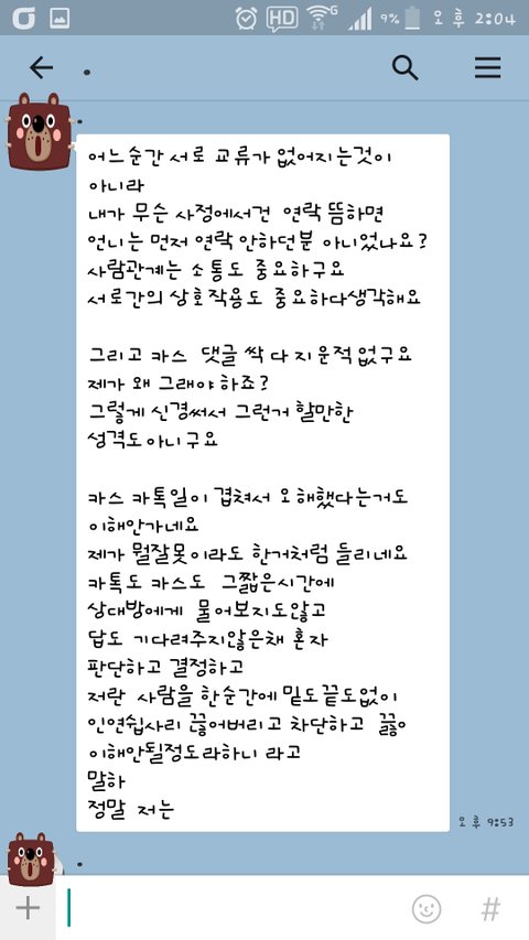 제가 섣불리 카톡 친구 차단했다고 오해한것은 맞지만(카스는 끊었음) 며칠동안 계속 생각해봤는데 이게 이렇게 화낼 일인가요?