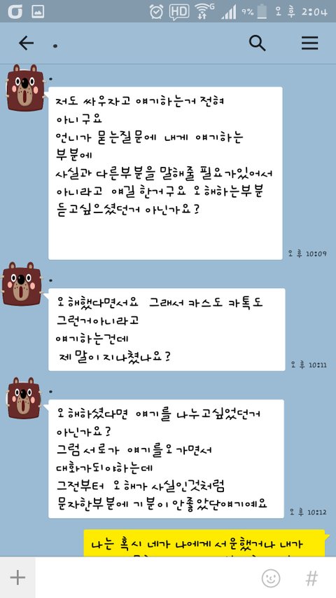 4. A가 카톡 차단한적 없고 카스는 사생활이라서 끊었다면서 자기를 그렇게 오해 했다고 계속 화냄