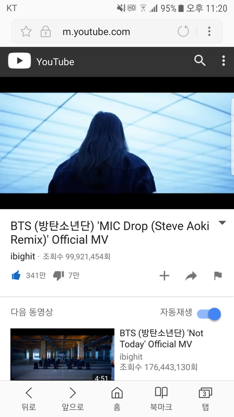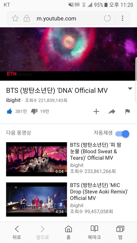 위에가 재생했을때 보이는 조회수고 아래가 DNA 눌렀을때 연관동영상으로 뜨는 조회수일단 재생했을때 꺼로 보고 해야할듯