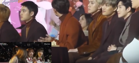 일단 작년 멜뮤어워드때 10cm 봄이좋냐 할 때 수호가 노래를 즐기면서 웃고있었음 근데 레드벨벳이 카메라/화면에 잡히니까 표정이 변함