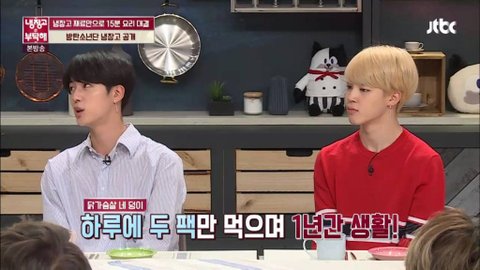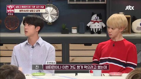 방탄소년단 진,지민이 냉장고를 부탁해 게스트로 나왔었어! 나는타팬이라이런일있었는지몰랐는데 타싸 반응보고 팬들도 왠지 몰랐던거같아서 가져옴! (((사진많음주의)))