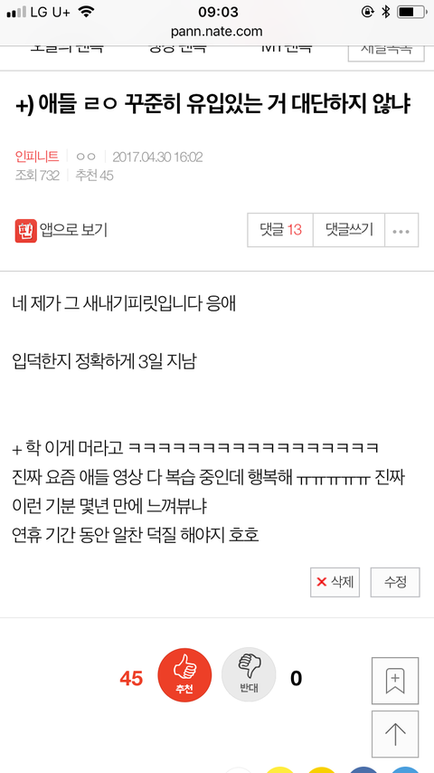 ㅅㄷ))ㅋㅋㅋㅋ 팬톡 글 쓴 거 찾아보다가